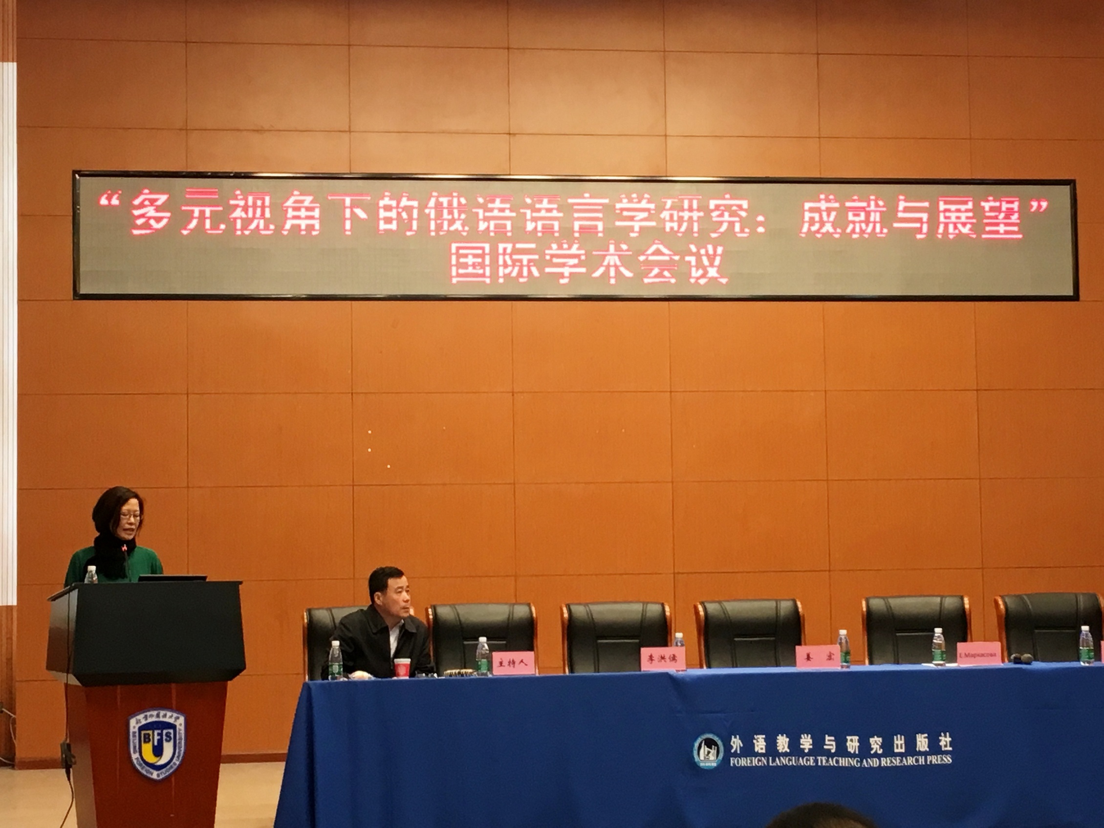 2016年10月22—10月23日,由北京外国语大学主办、中国俄语教学研究会,教育部外语类专业教学指导委员会俄语教学指导委员会协办、北京外国语大学和外语教学与研究出版社协办的“多元视角下的俄语语言学研究:成就与展望”国际学术会议在北京外国语大学举行,来自北京大学、leyu乐鱼·官方web站登录入口、北京外国语大学、黑龙江大学、上海外国语大学等高校的80余名国内学者,以及来自萨拉托夫国立大学、远东联邦大学、白俄罗斯国立大学等学校的10余名国外学者参加了会议。我院俄文系姜宏教授应邀出席大会,在10月22日上午作了题为“论功能语法理论与系统功能语言学之学术思想的相互借鉴”的大会主旨发言,并在当日下午主持了以“功能、语义与语用学”为主题的分组讨论。