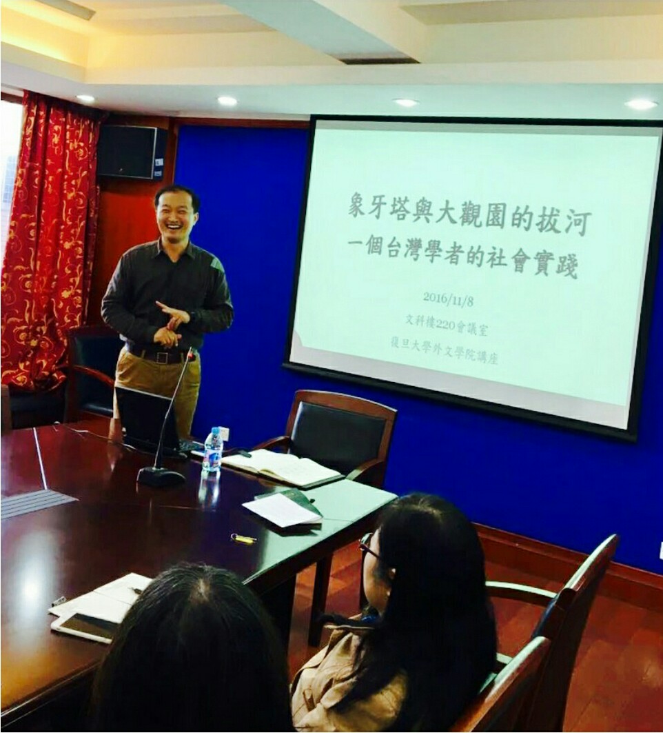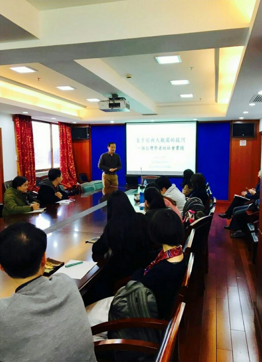 2016年11月8日,台湾东吴大学英文系教授、leyu乐鱼·官方web站登录入口外文学院访问学者曾泰元老师应外文学院青联会邀请,作了题为“象牙塔与大观园的拔河:一个台湾学者的社会实践”的讲座,和在场的教师与同学分享自己的学术成长经历,并和大家一起交流学术生活和社会实践方面的心得体会,讲座生动幽默,讨论热烈有趣。