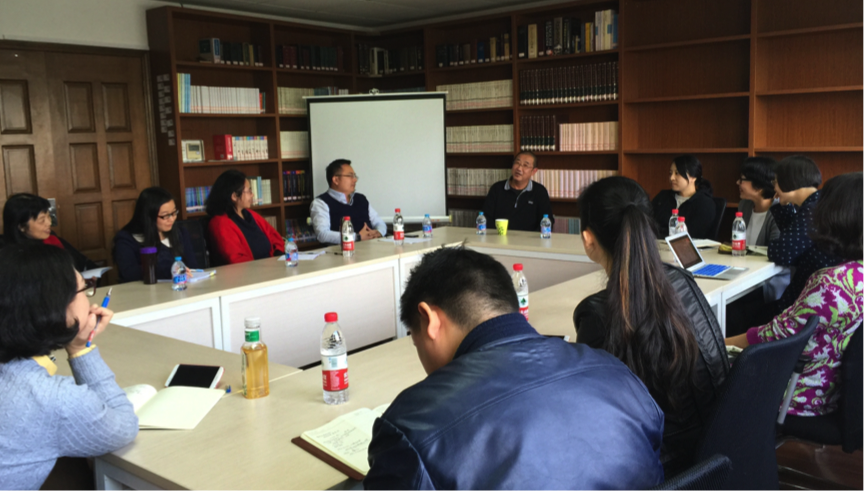 2016年11月15日中午,上海市教学名师、外文学院张冲教授以“教学还是科研”为题,围绕“如何使科研浅出教学、如何借科研深化教学”这一主线与外文学院教师进行了圆桌讨论。此次圆桌讨论由英文系和外文学院青联会主办,英文系副系主任段枫老师主持,不仅吸引了英文系、翻译系、俄文系、德文系、法文系和其他院系多位青年教师的参与,外文学院副院长卢丽安教授也和青年教师一起分享讨论了自己的教学和科研经验。