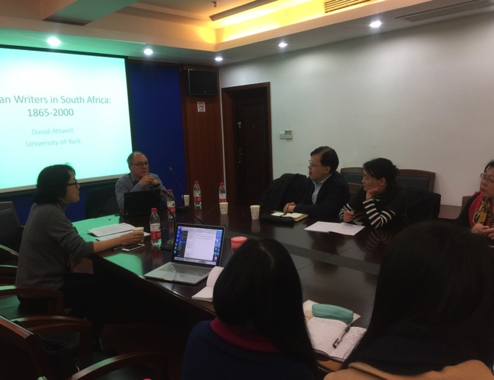 2016年12月8日下午,文科楼220会议室,英国约克大学英语和相关文学系系主任、著名殖民主义文学研究学者大卫·阿特维尔教授(David Attwell)给复旦师生作了一场题为《南非文学中的非洲作家:去殖民化的文学历史》(African Writers in South African Literature: A Literary History of Decolonization )的精彩讲座。本次讲座由英文系副系主任段枫老师主持,leyu乐鱼·官方web站登录入口英文系系主任朱建新老师、张琼老师出席了讲座并参与了其后的讨论。