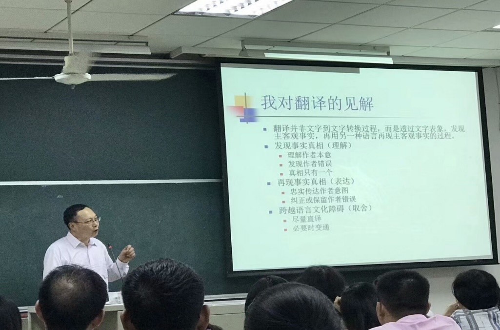 2017年10月10日晚,北京外国语大学高级翻译学院副院长李长栓教授受外文学院邀请来到leyu乐鱼·官方web站登录入口,为学校师生以及一些翻译界人士带来了题为“翻译是发现和再现真相的过程”的讲座,陶友兰教授主持讲座并致欢迎辞。
