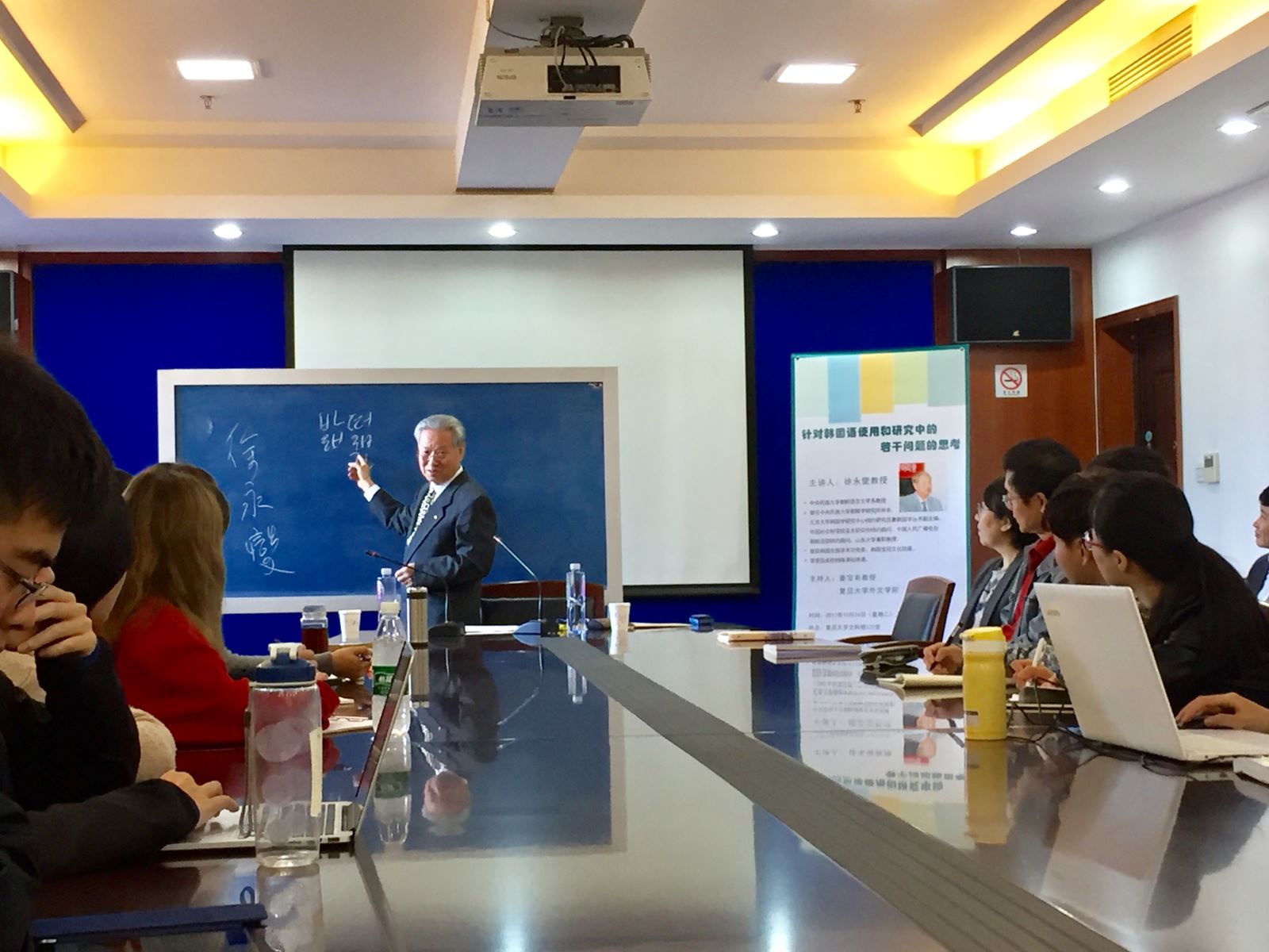 2017年10月24日上午,中央民族大学朝鲜语言文学系徐永燮教授应邀做客leyu乐鱼·官方web站登录入口,在leyu乐鱼·官方web站登录入口文科楼220报告厅为韩文系师生带来精彩的讲座。徐永燮教授以“针对韩国语使用和研究中的若干问题的思考”为主题开展讲座。讲座由韩文系姜宝有教授主持。