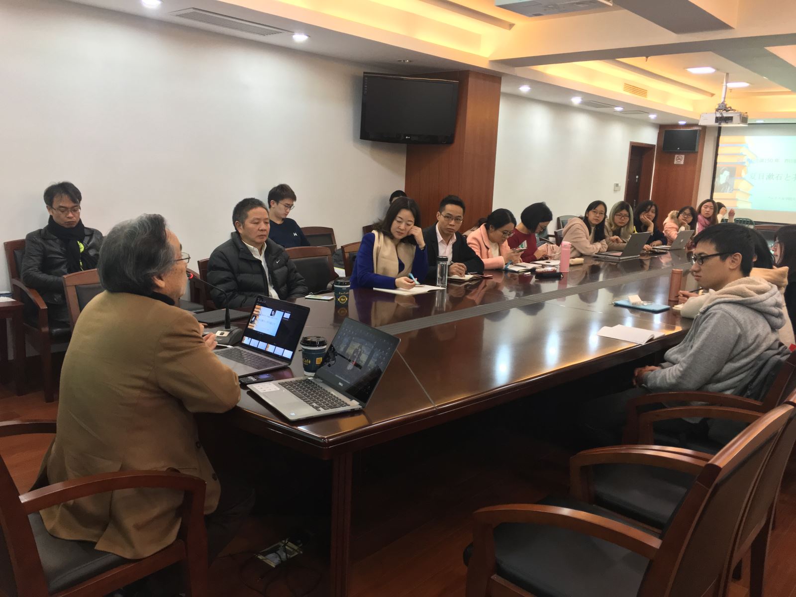 第二讲,面向研究生,内容更具深度。宫坂老师以芥川龙之介的《罗生门》作为具体的研究文本,为同学们讲解了文本分析的方法,带领同学们深入文本,仔细探讨每一个关键词在词义的表面之下,尚待深入阐释的部分。讲座偏重学术性,对同学们独立开展文本研究具有很大的启示性。