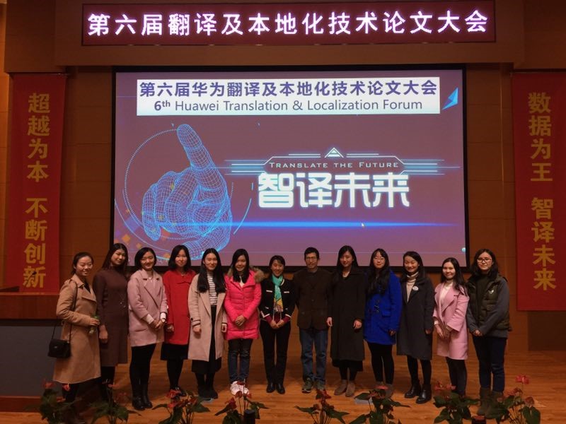 2017年12月9日,我院翻译系陶友兰教授、王建开教授及一名大四学生、一名科硕和8位MTI学生应华为翻译中心邀请出席华为翻译及本地化技术论文大会。