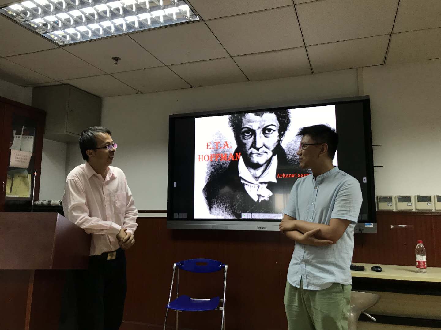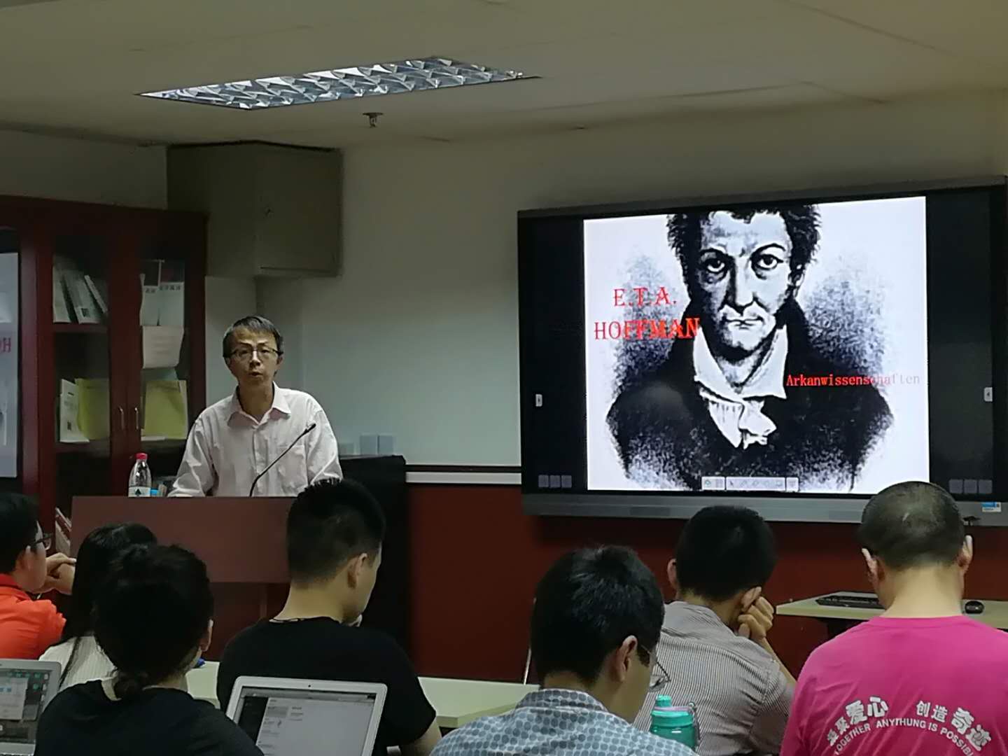 2018年5月17日,leyu乐鱼·官方web站登录入口外文学院青联会有幸邀请了上海外国语大学德语系梁锡江教授,在文科楼424举行了主题为“德国浪漫派作家霍夫曼与神秘学”的讲座。本次讲座由外文学院德语系青年研究员李双志老师主持,吸引了众多对霍夫曼、对神秘学感兴趣的本校外校师生。