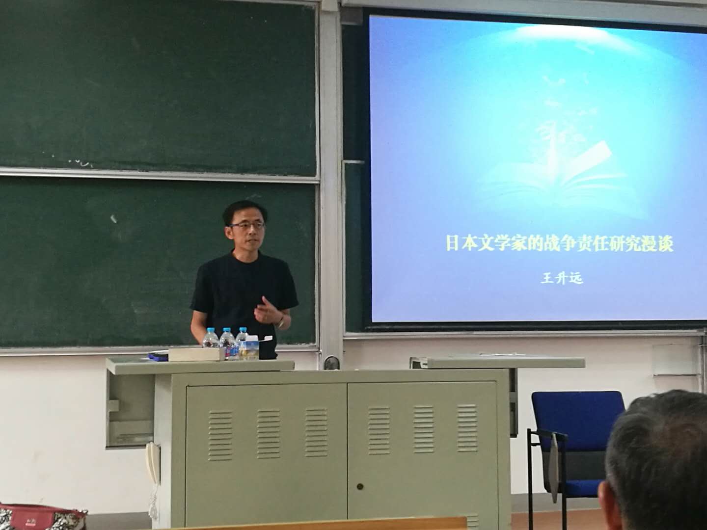 报告会由日文系王升远教授作题为“日本文化人战争责任研究漫谈”的专题讲座,这既是王升远教授从“战争责任”的视角对过去十年研究的一个个人感悟式总结,是他对其正在处理的战后初期日本文坛战争责任论争的一种阶段性思考,也是对学术界近年来骤成风尚的日本战争文学、文学家战争责任相关研究的一种观察和理解。