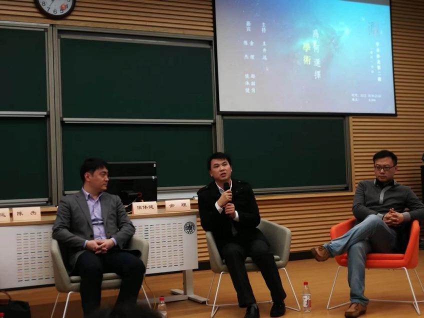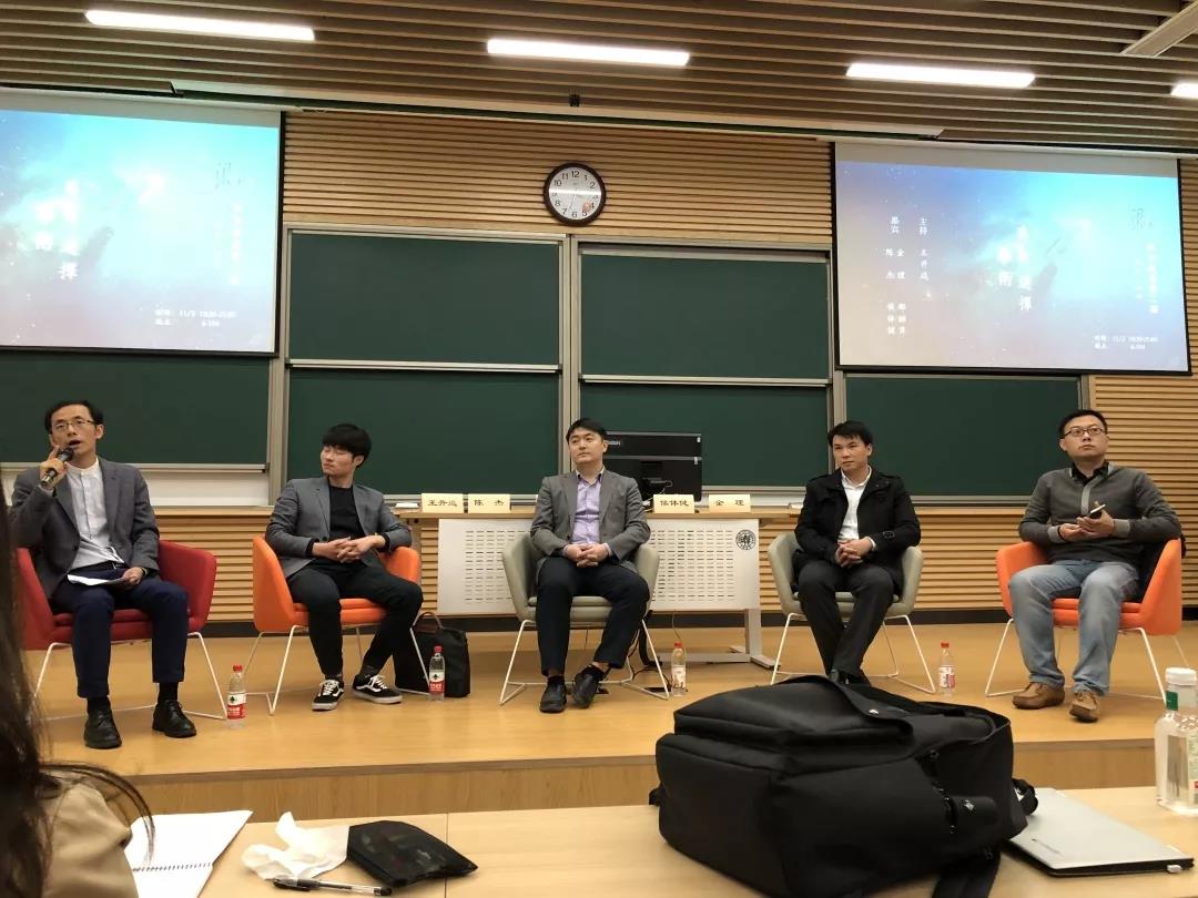 2018年11月2日,“问西东”学术沙龙第二期在五教102教室成功举办,本次活动由围炉协会协办,外文学院王升远老师担任主持,邀请到外文学院陈杰老师、哲学学院郁喆隽老师、中文系侯体健老师和金理老师四位青年学术“大咖”共谈“学术何为”。