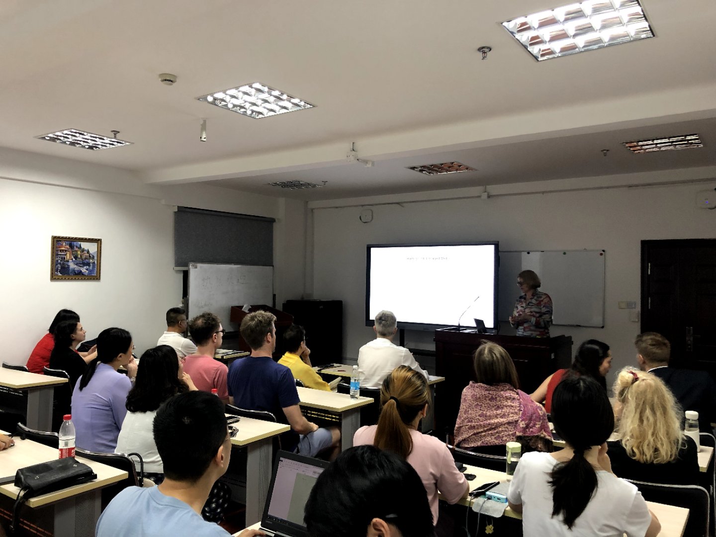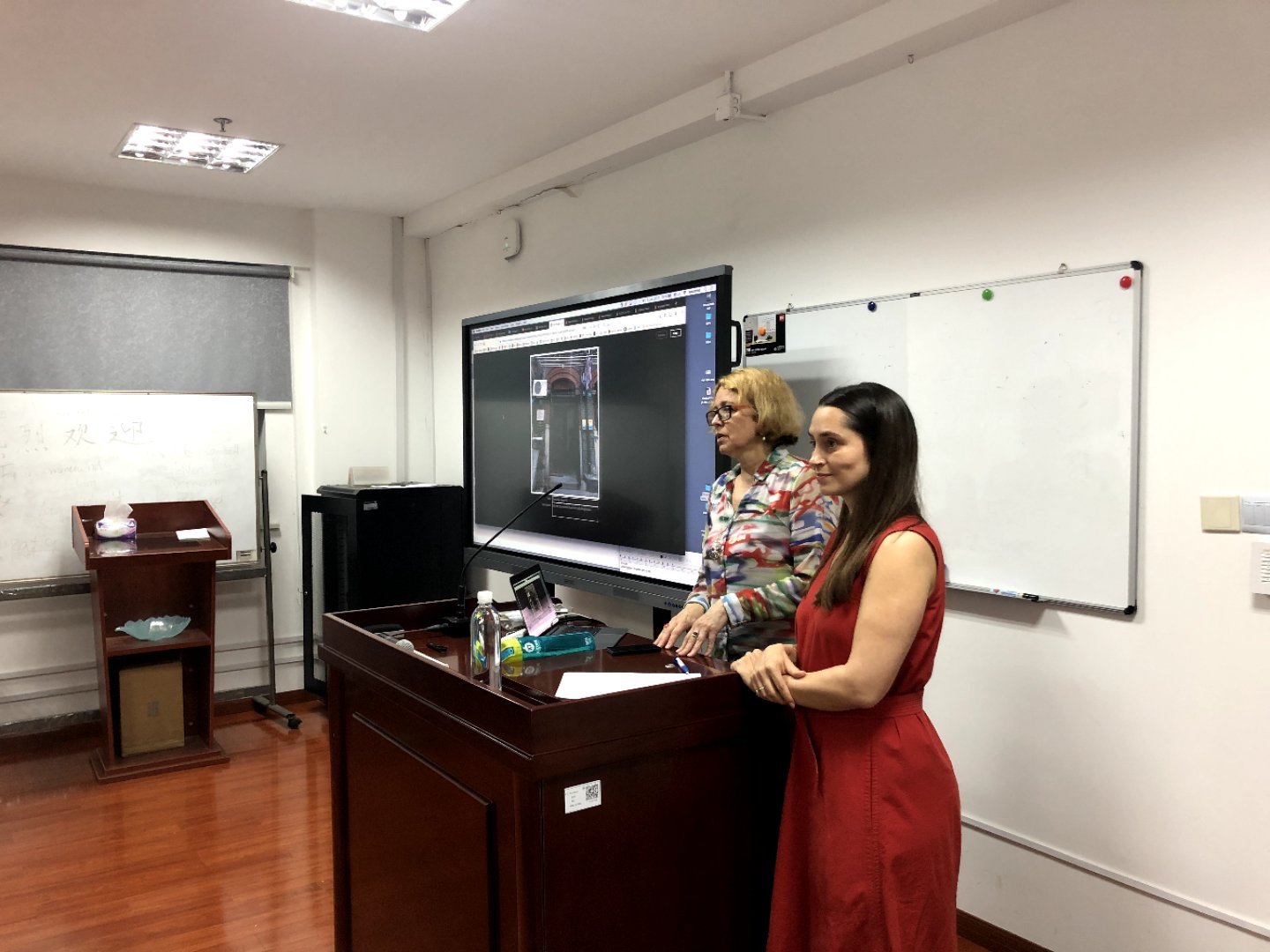 2019年6月5日晚,外文学院青联会夏季讲座在文科楼举行,本次讲座由德国外教Sakine Weikert主持,主讲人Mechthild Schmidt Feist教授作了题为“上海光影地图”(Shanghai maps of light+shadow)的报告。