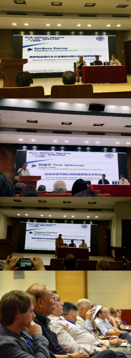 开幕式后,六位国内外顶尖学者和作家依次做大会主旨发言。他们分别是莫斯科大学当代俄罗斯文学教研室主任М. Голубков教授,北京外国语大学张建华教授,俄罗斯高尔基文学院校长兼作家А.Варламов教授,俄罗斯著名当代作家В.Ерофеев, 华东师范大学陈建华教授,俄罗斯侨民基金会研究员Т. Тюрина。六位学者和作家的演讲囊括了20-21世纪俄罗斯文学中的重要问题,其中既涉及近一百多年来俄罗斯文学发展进程的主要规律和特征,也涉及不同的文学流派和思潮,还涉及书写主题和研究现状。