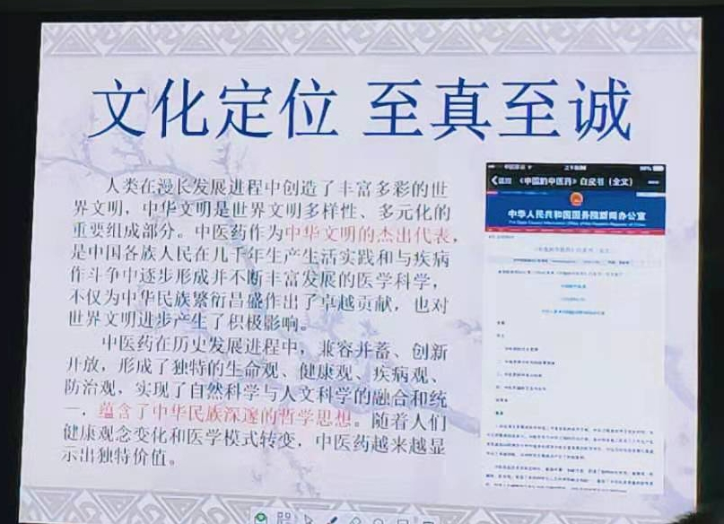 中医翻译可谓世界难题。李照国教授指出,理解中医术语和中医文化思想,须立足国学,尊重先贤,并贯通古今。做好中医的翻译与对外传播,必须打好国学基础。讲座中,李教授以 “人中”二字的翻译为例,追根溯源,带领我们体会了中医所蕴含的中华文化哲学思想,启发我们多读多看多思考。