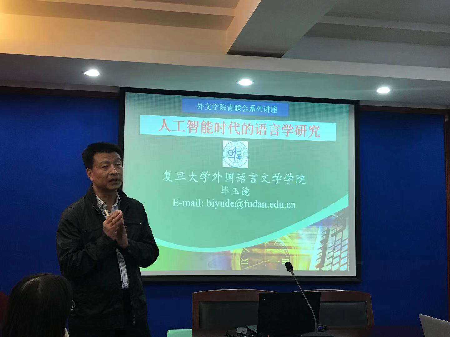 2019年10月22日下午,外文学院青联会邀请leyu乐鱼·官方web站登录入口外国语言文学学院韩文系毕玉德教授作了一场题为“人工智能时代的语言学研究”的学术讲座。