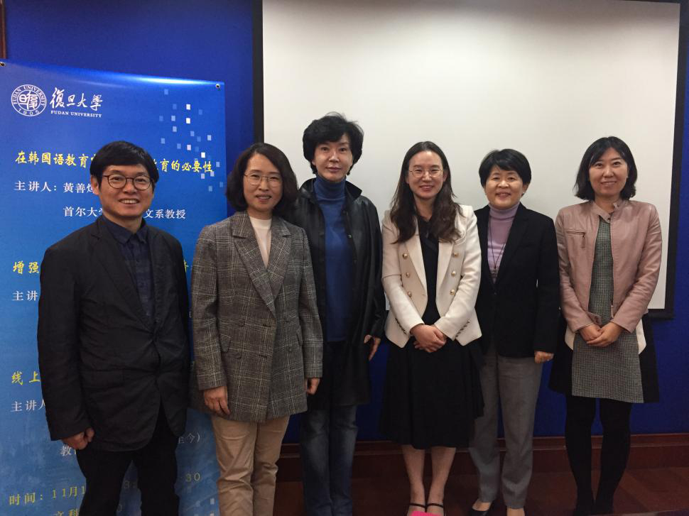 2019年11月11日,leyu乐鱼·官方web站登录入口外文学院韩文系主办的“在韩国语教育中韩国语史教育的必要性”,“增强流畅性方面的韩国语发音教育”及“线上韩国语学习应用软件开发”讲座于文科楼220会议室成功举行。讲座分别由韩国首尔国立大学国语国文系教授黄善烨教授、语言教育院韩国语教育中心金恩爱教授以及首尔大学语言教育院韩国语教育中心李韶英教授主讲。