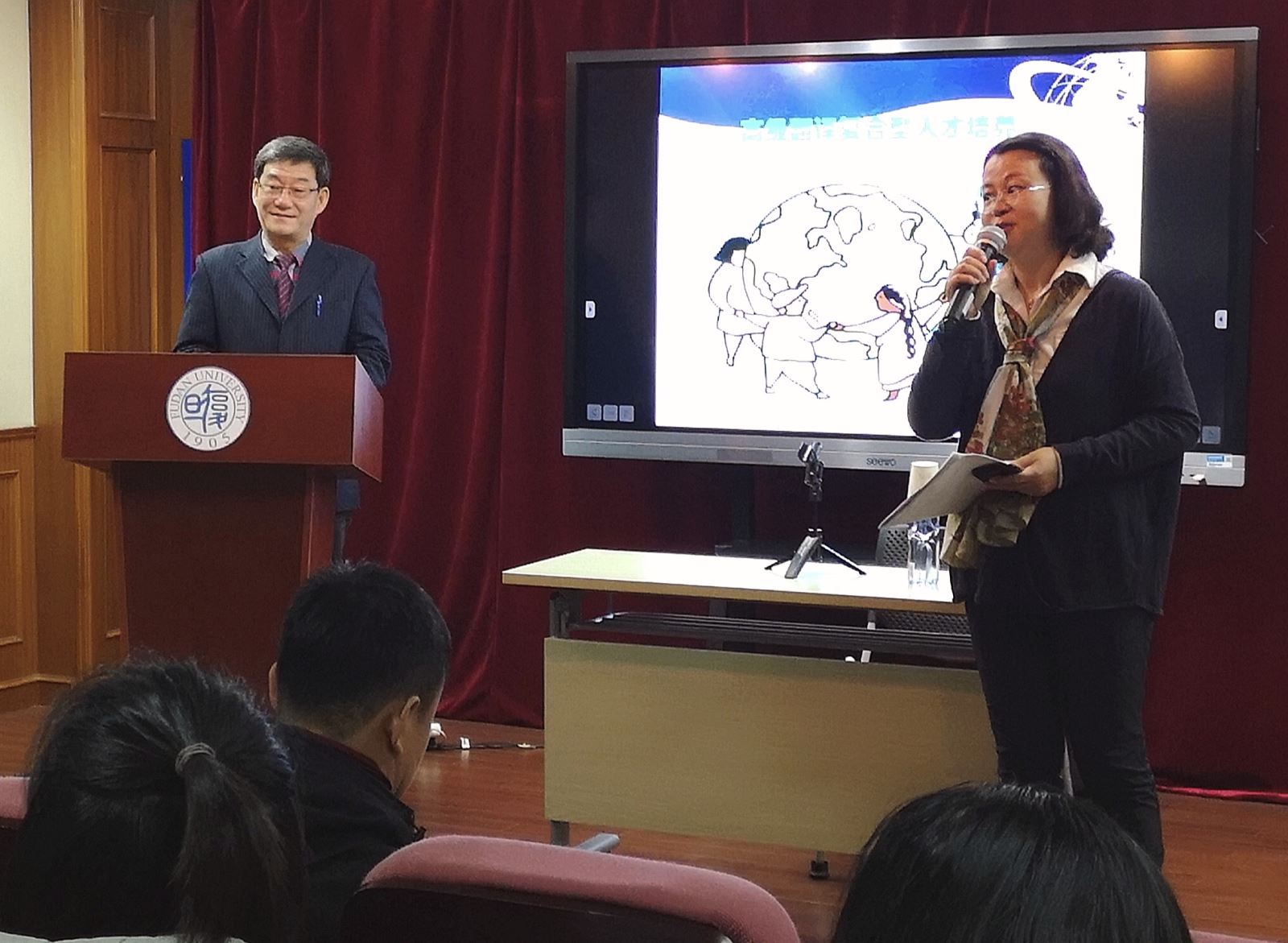 2019年11月26日上午,leyu乐鱼·官方web站登录入口外文学院法文系成功举办了“高级翻译培养与外语复合型人才教学”的主题讲座,主讲人为首都师范大学的李军教授。李教授曾为国家领导人、中非论坛、博鳌论坛、奥运会、世博会、中法文化年等重大活动和国际学术研讨会担任同传和交传,有着极为丰富的口笔译实践和教学经验。该讲座由复旦法文系主任袁莉老师主持。
