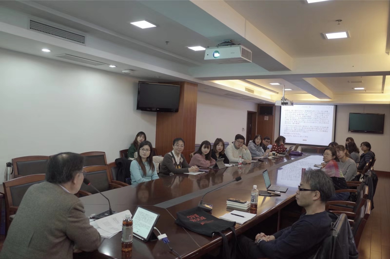 11月20日,千叶俊二教授以谷崎润一郎代表作《刺青》为题,通过文献梳理,指出《日本社会事汇》等文献对于谷崎创作的影响,并对作品中“妲己”、“狐狸”、“樱花”等形象做了细致分析,并归纳了谷崎文学的三个特质。