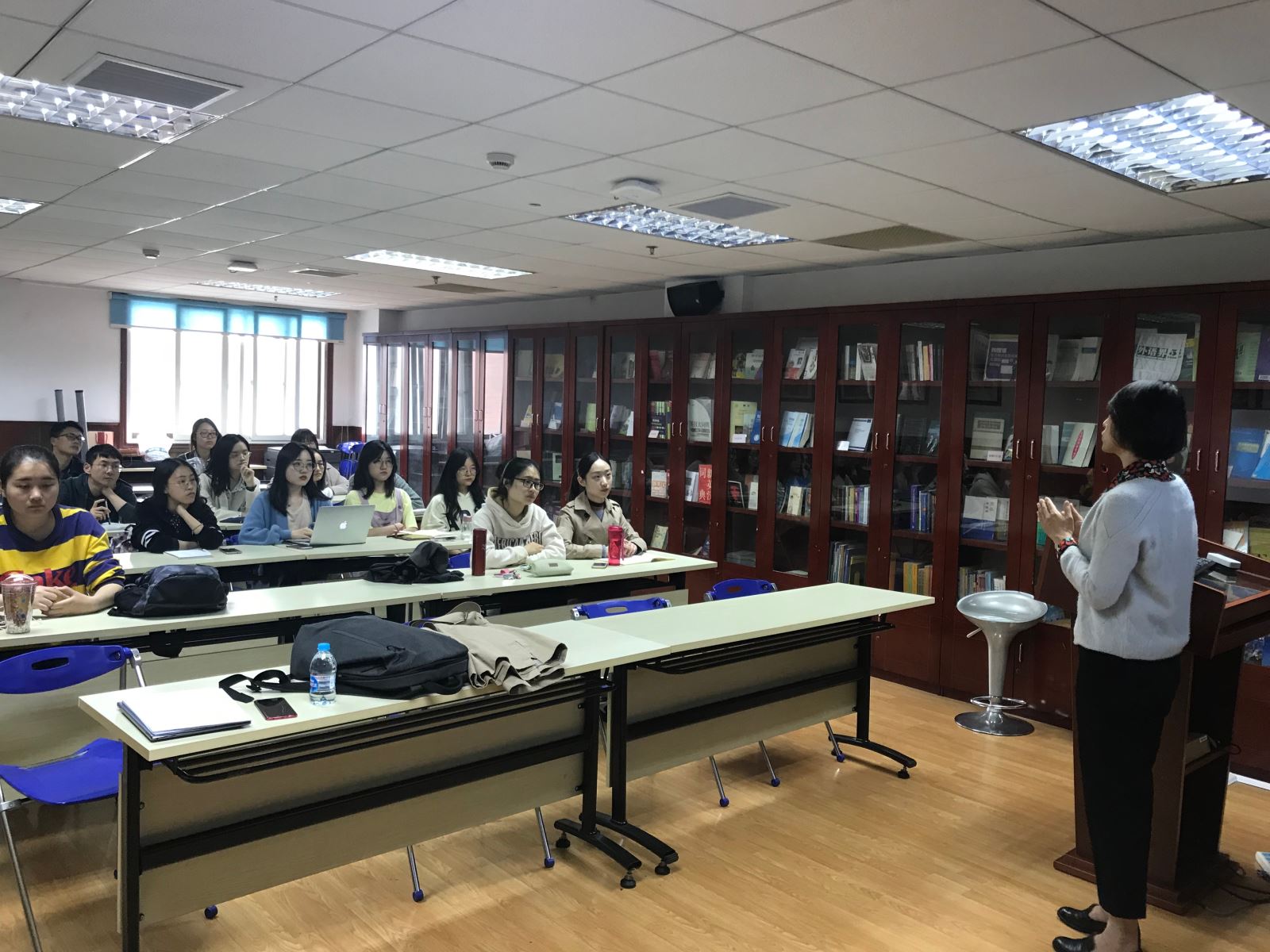 介绍结束后,同学们就自己关心的问题提问,问题包括华为译员的具体工作内容、工作形式和工作分工,华为翻译中心对实习生的工作要求,以及实习生通过实习能得到的收获。