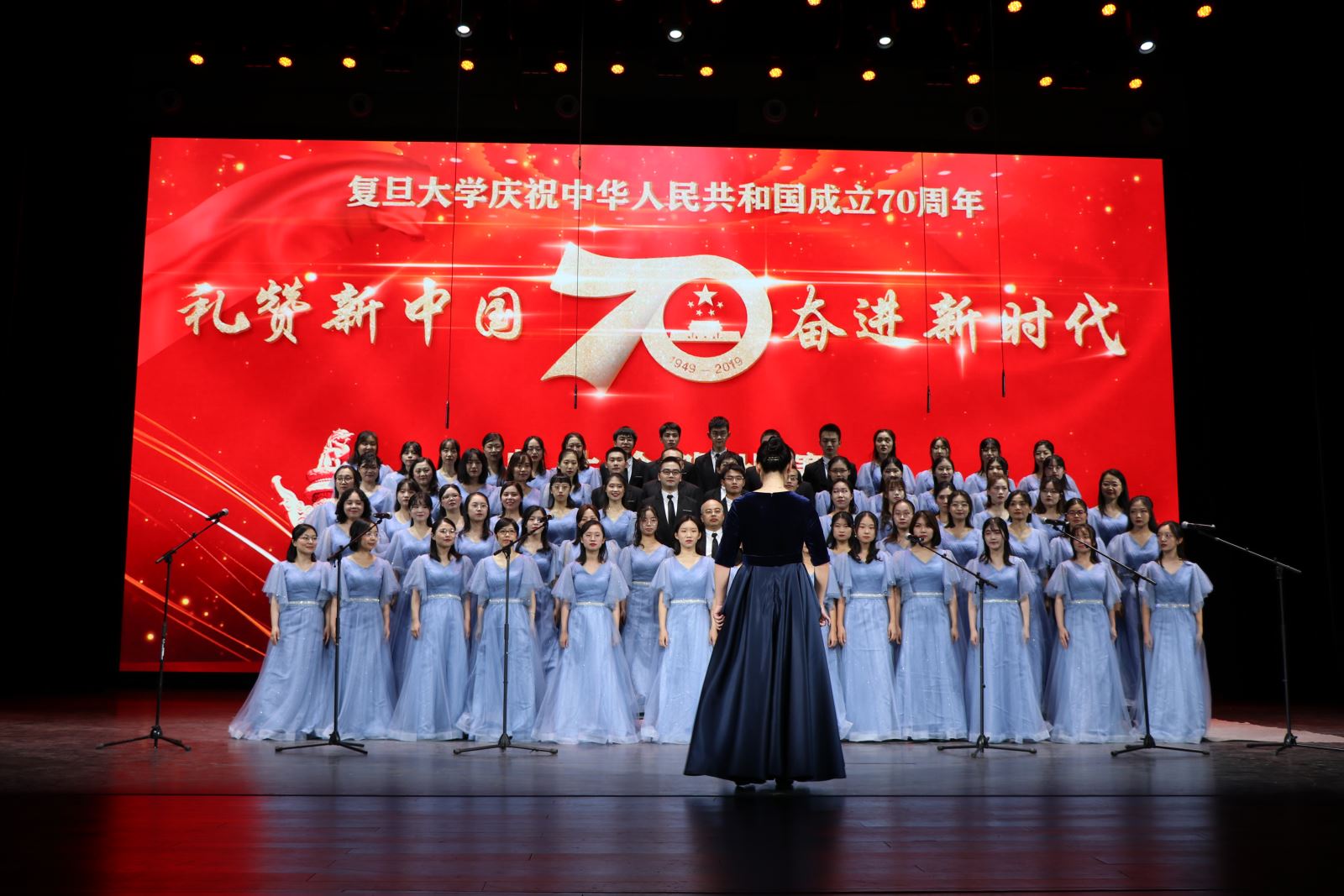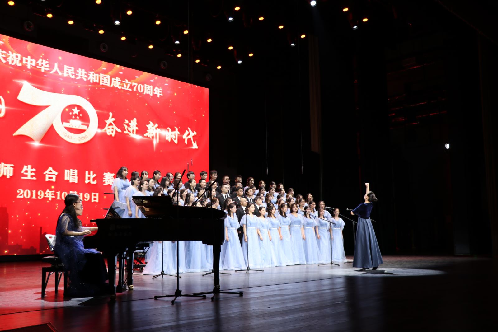 2019年10月19日,“礼赞新中国、奋进新时代”——leyu乐鱼·官方web站登录入口师生庆祝新中国成立70周年师生合唱比赛在相辉堂隆重举行。外文学院合唱团参加了大合唱比赛,经过一个多月的紧张排练,师生默契十足,现场发挥稳定,赢得掌声阵阵。最后虽与奖项擦肩而过,但师生拳拳赤子心、殷殷爱国情在歌声中愈唱愈响,激励着外院师生不忘初心、砥砺向前。