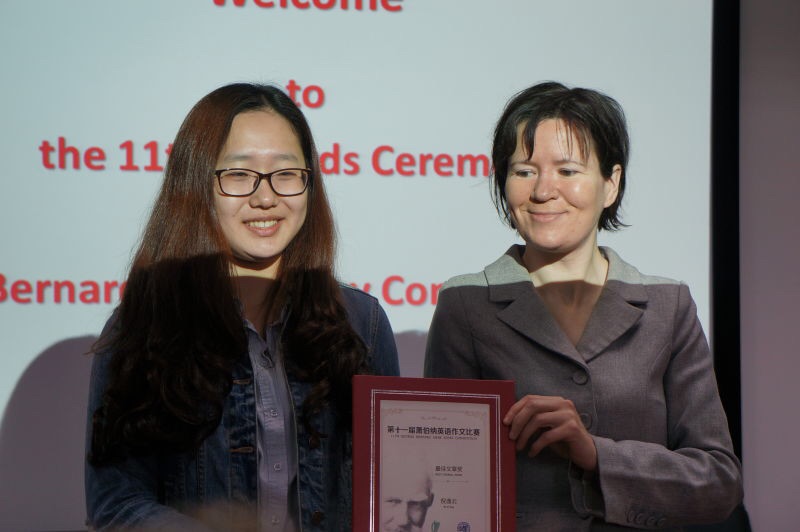 第11届萧伯纳英语作文写作比赛颁奖仪式于4月27日在文科楼510举行。爱尔兰驻上海总领事馆总领事Therese Healy 女士专程前来为学生颁奖。