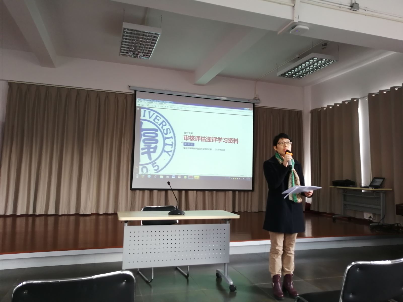 2018年11月20日,外文学院在工会204报告厅举行全院教师大会,推进本科教学审核评估迎评工作。会议由分党委书记罗英华主持。