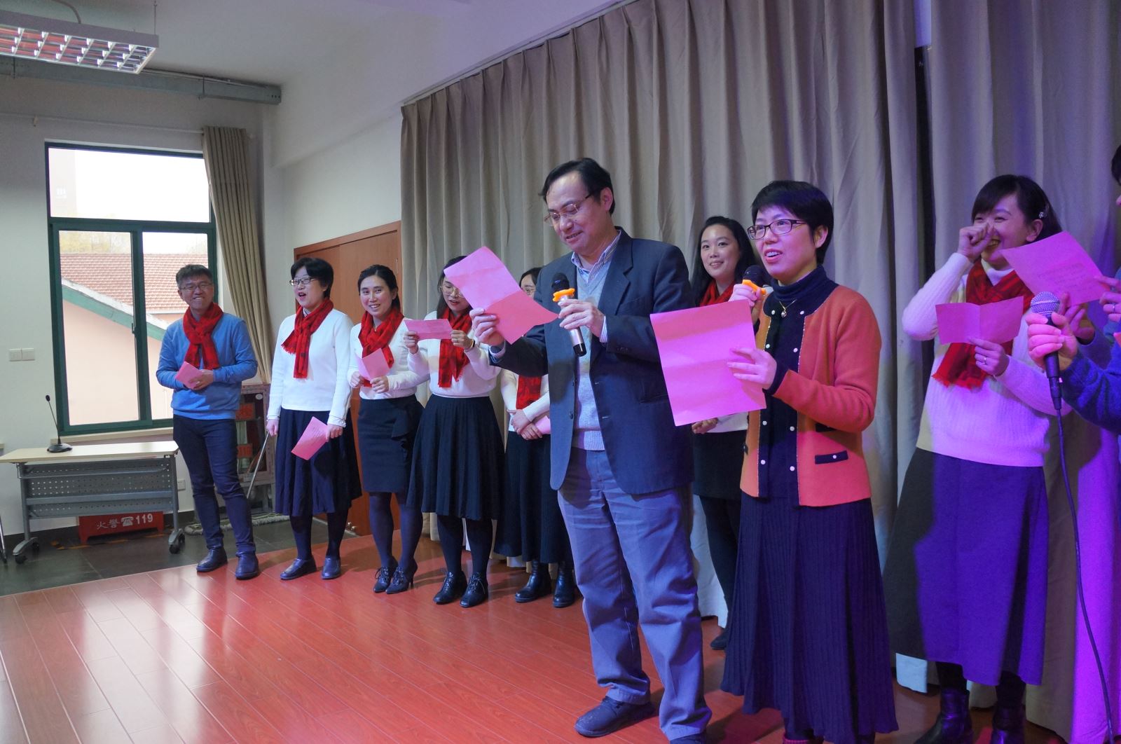 在联欢环节,大英部时丽娜老师为大家带来了精彩独唱《西班牙女郎》,多语种合唱队还献上了用九种语言演唱的歌曲《If You》,最后,学院党政领导也来到台上,与大家共唱《明天会更好》。让我们齐心协力,共同奋斗,学院的明天更美好!